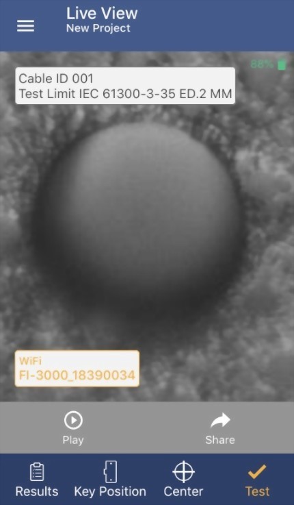 FI-3000 也可通過 Wi-Fi 連接到 iOS 或 Android 設備,適合小型作業或快速檢測。FiberInspector APP (FI-IN) 顯示簡單的通過/失敗結果,可以完全控制 FI-3000,讓您可以放大或縮小各個端面並平移整個端面的即時視圖。FI-IN 支援在設備中命名和保存結果,或者以圖像或 PDF 報告發送給團隊中的其他人,以便快速、簡單地進行協作。