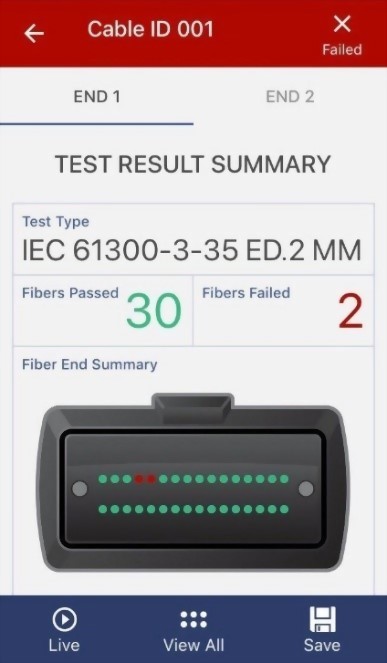 61300-3-35 端面標準對其進行分級,每根光纖兩秒內即可完成總體“通過/失敗”測試。可以使用手勢方便地從摘要視圖切換到詳細視圖。