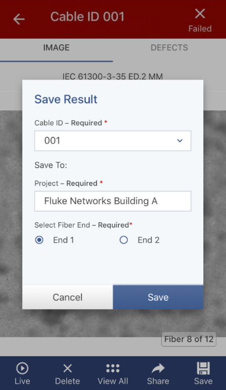 多攝影鏡頭設計提供即時視圖,簡單的觸控手勢,可實時從全主幹移動到各個終端。自動判斷通過失敗並將結果保存於手機上並通過簡訊或電子郵件分享,也可使用業界領先的 LinkWare 平臺保存完整的項目報告,包括銅纜、光纖損耗、OTDR 和端面圖像*。簡易、符合人體工學的設計和自動對焦,讓您可以舒適地測試成千上百的纜線或埠。