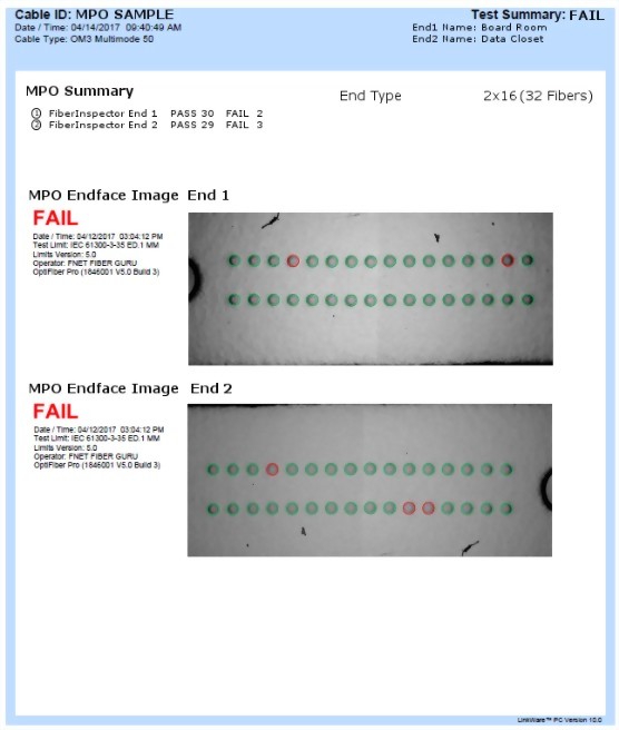 • 自動完成 MPO 主幹和端面的通過/失敗測試